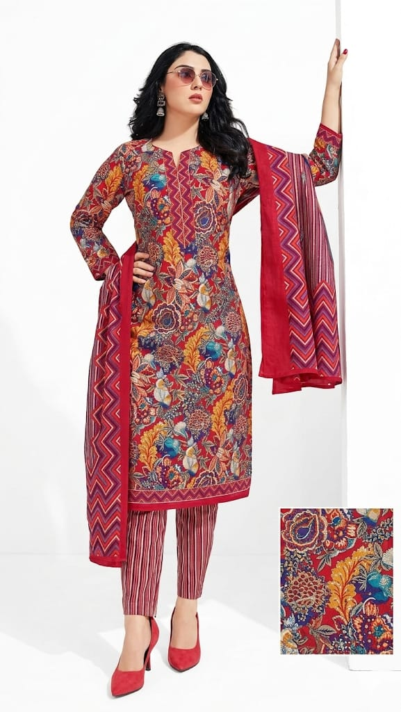 – Top: 2.5 meters of soft, breathable Cotton Printed fabric